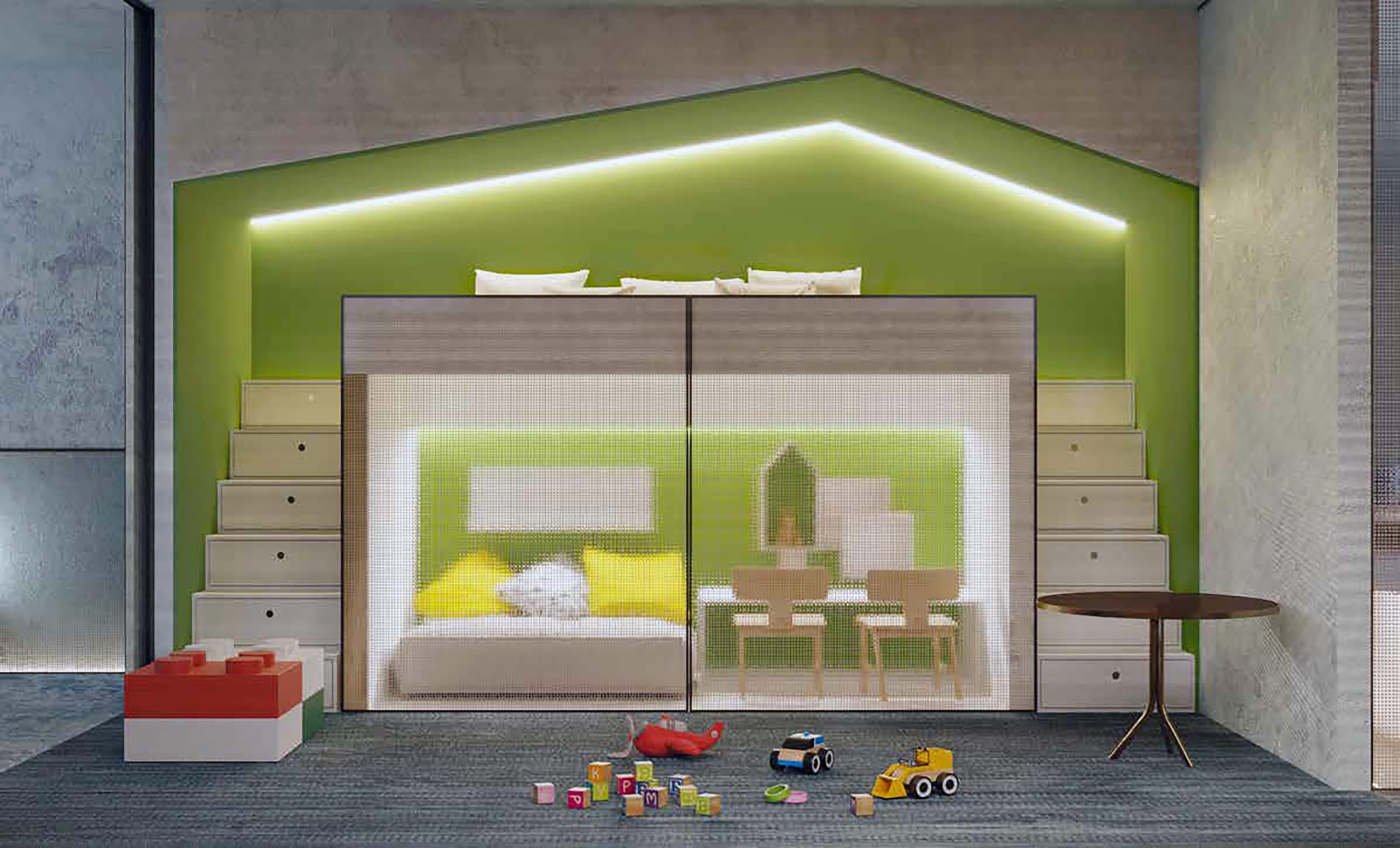 Inside the residences and suites, the level of detail is immediately apparent. Dedicated children’s zones, complete with bunk-style sleeping areas and integrated play spaces, have been beautifully considered. Sliding smoked-glass partitions allow these areas to be closed off when needed, offering both privacy and flexibility within the home.
