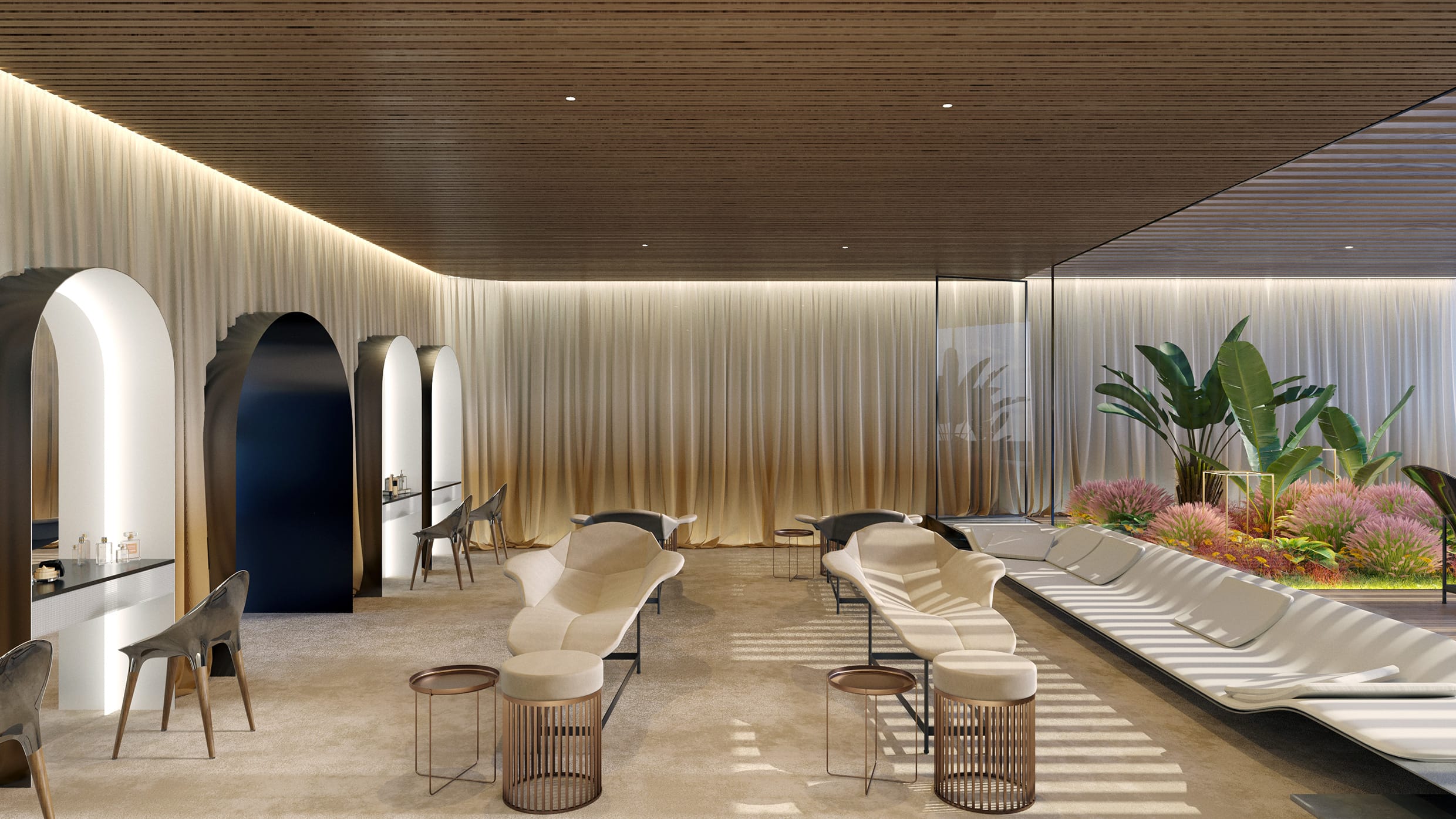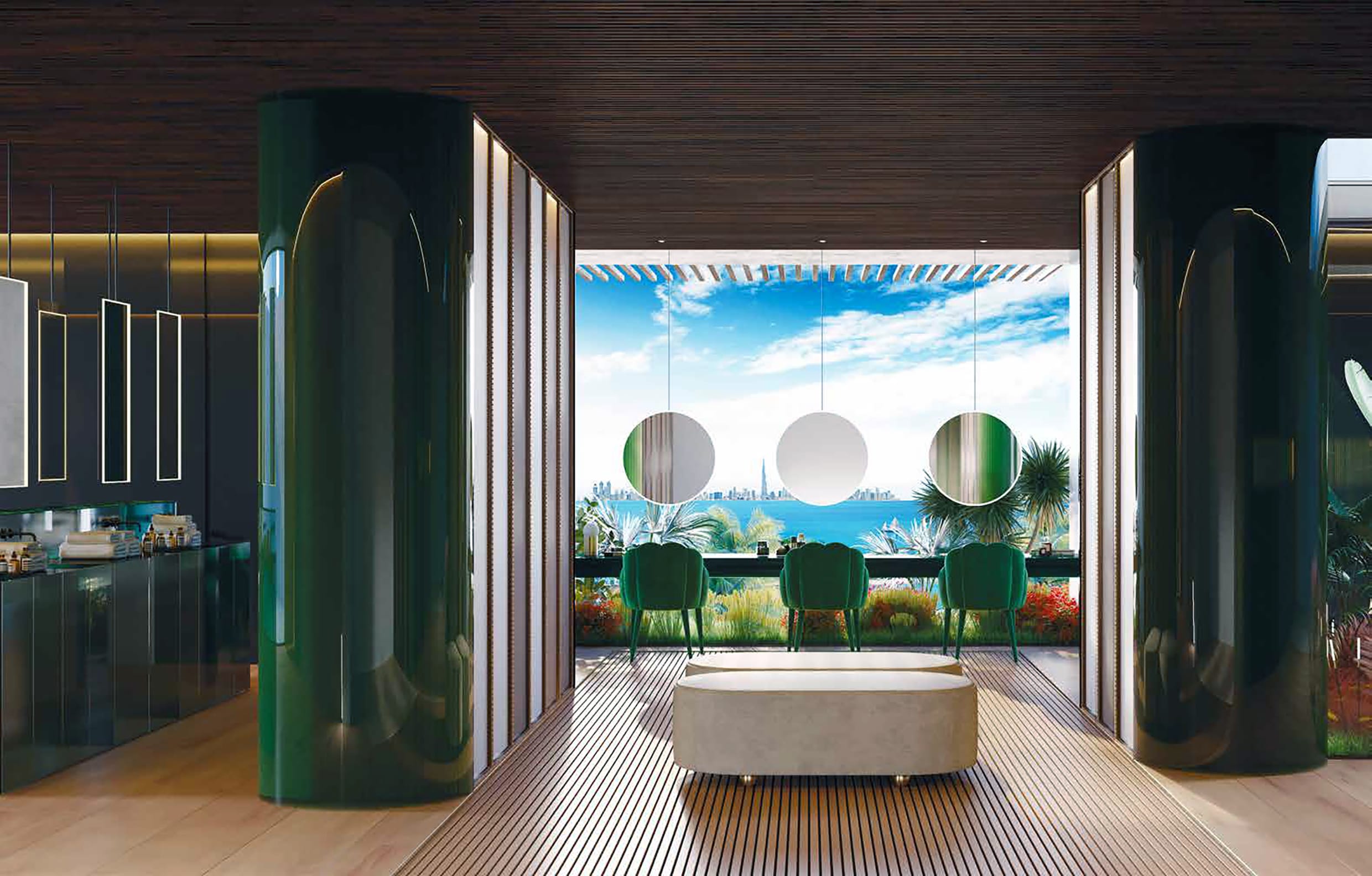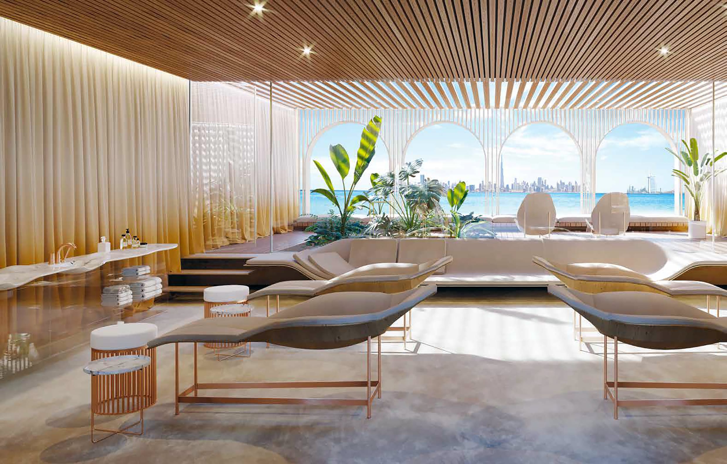 Created as both a spa and a social lounge, this refined retreat offers a place to slow down, recharge and reconnect, whether enjoying a quiet moment of relaxation or sharing the experience with friends.